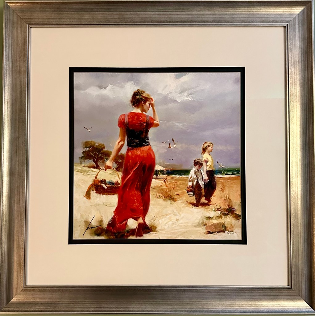 And the main wall hanging we chose that still hangs above the changing table, it takes my breath away. Not only have both of my kids stared at it as babies intently, but, most importantly, the painting told us what would happen all along. First, we will have a daughter. And then, a while later, we will have a son. (And maybe at some point, Jenn or I will don a red dress…no news yet on when that might happen.)